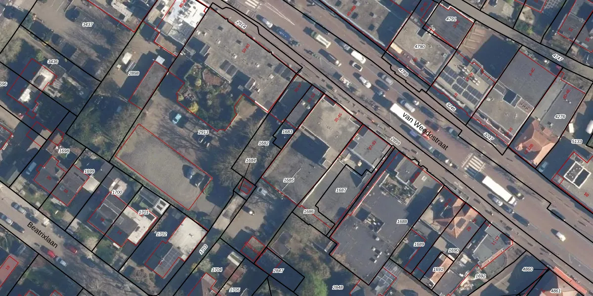 van Weedestraat 45 is gelegen op kadastraal perceel SOE00K1685. Deze kadastrale aanduiding is uniek en wordt gebruikt door het Kadaster om eigendomsrechten en andere zakelijke rechten vast te leggen. Het perceel maakt onderdeel uit van de kadastrale gemeente Soest.