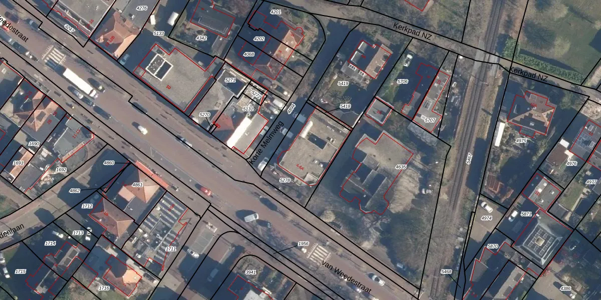 Het perceel waarop van Weedestraat 6 staat heeft een oppervlakte van 535 m². Dit is een groot perceel. De perceeloppervlakte wordt geregistreerd door het Kadaster. Gedetailleerde informatie over de maten van dit perceel kunt u vinden in het rapport Kadastrale kaart met maatvoering van van Weedestraat 6.