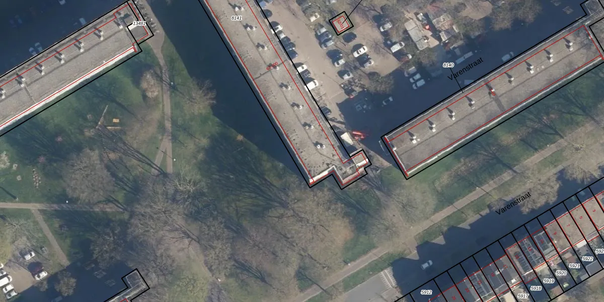 Het perceel waarop Varenstraat 164 staat heeft een oppervlakte van 1627 m². Dit is een zeer groot perceel. De perceeloppervlakte wordt geregistreerd door het Kadaster. Gedetailleerde informatie over de maten van dit perceel kunt u vinden in het rapport Kadastrale kaart met maatvoering van Varenstraat 164.