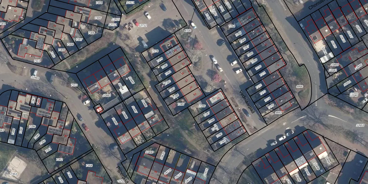 Gebruik de zoekbalk of klik op een perceel voor informatie over de adressen binnen dit perceel.