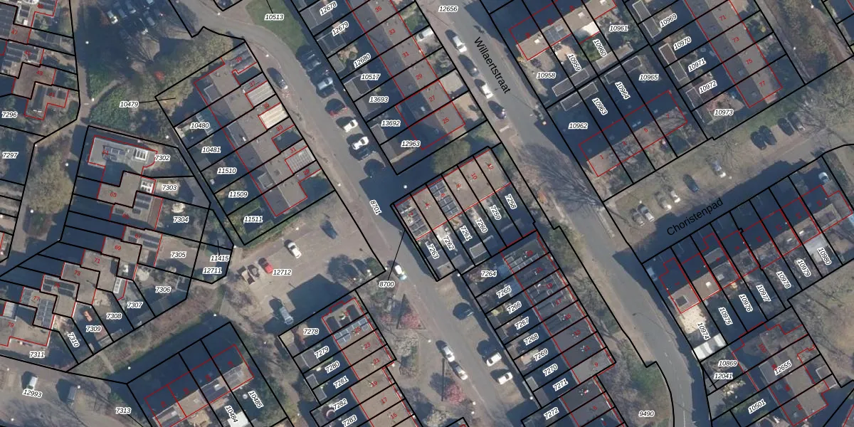 Gebruik de zoekbalk of klik op een perceel voor informatie over de adressen binnen dit perceel.