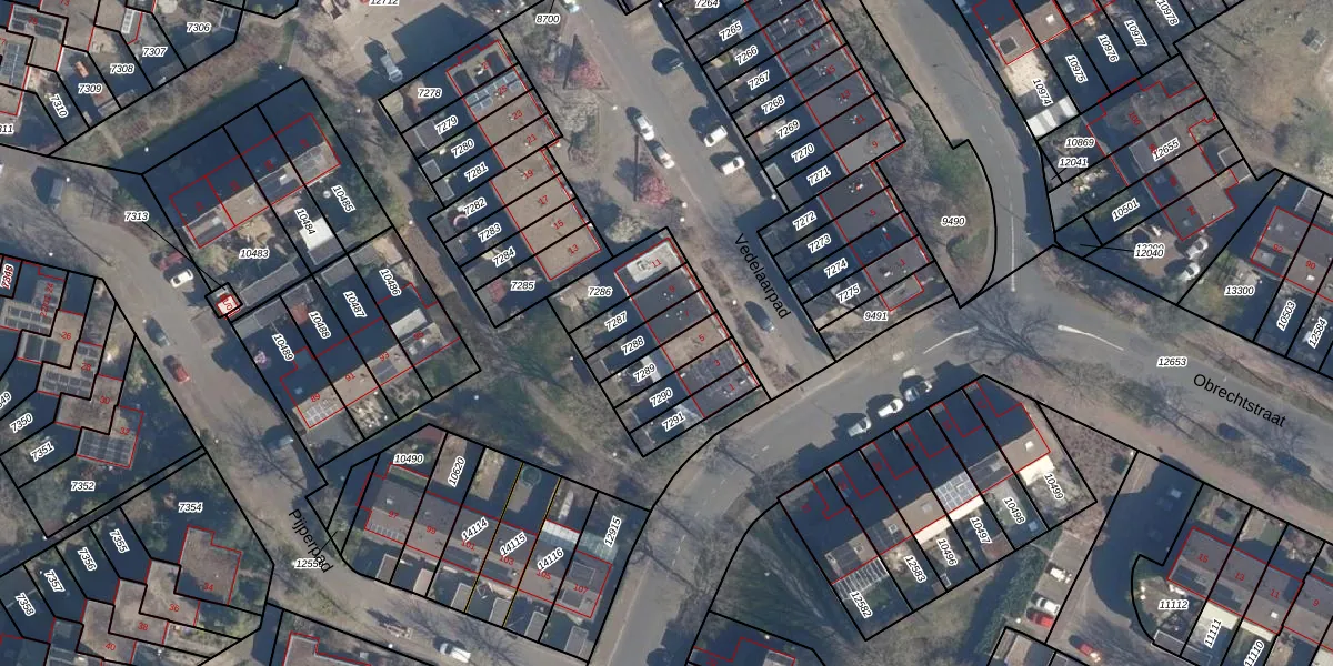 Het perceel waarop Vedelaarpad 7 staat heeft een oppervlakte van 90 m². Dit is een klein perceel. De perceeloppervlakte wordt geregistreerd door het Kadaster. Gedetailleerde informatie over de maten van dit perceel kunt u vinden in het rapport Kadastrale kaart met maatvoering van Vedelaarpad 7.