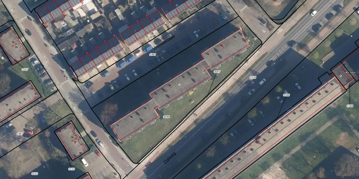 Het perceel waarop Vermeerlaan 47 staat heeft een oppervlakte van 2925 m². Dit is een zeer groot perceel. De perceeloppervlakte wordt geregistreerd door het Kadaster. Gedetailleerde informatie over de maten van dit perceel kunt u vinden in het rapport Kadastrale kaart met maatvoering van Vermeerlaan 47.