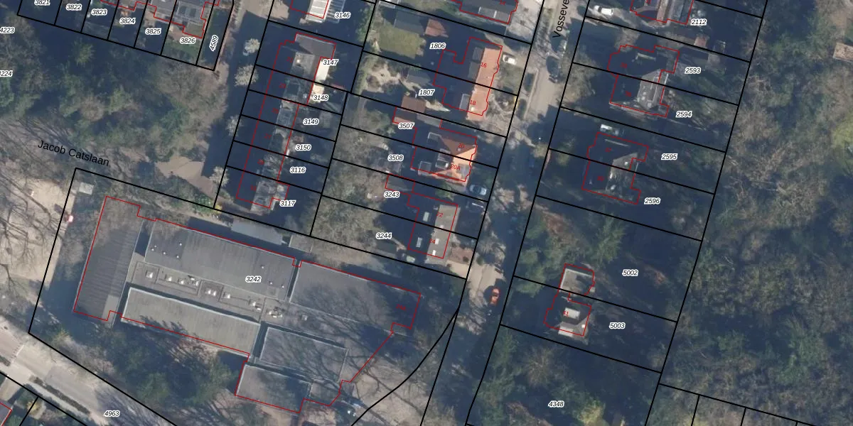 Het perceel waarop Vosseveldlaan 22 staat heeft een oppervlakte van 347 m². Dit is een groot perceel. De perceeloppervlakte wordt geregistreerd door het Kadaster. Gedetailleerde informatie over de maten van dit perceel kunt u vinden in het rapport Kadastrale kaart met maatvoering van Vosseveldlaan 22.