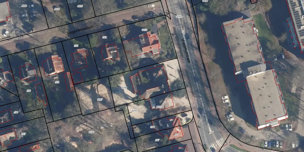 Het perceel waarop Vredehofstraat 5 staat heeft een oppervlakte van 996 m². Dit is een groot perceel. De perceeloppervlakte wordt geregistreerd door het Kadaster. Gedetailleerde informatie over de maten van dit perceel kunt u vinden in het rapport Kadastrale kaart met maatvoering van Vredehofstraat 5.
