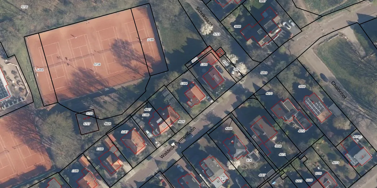 Gebruik de zoekbalk of klik op een perceel voor informatie over de adressen binnen dit perceel.