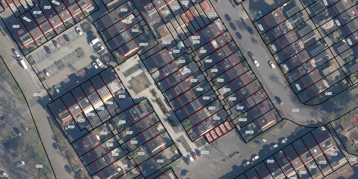 Walraven van Hallhof 10 is gelegen op kadastraal perceel SOE00G7657. Deze kadastrale aanduiding is uniek en wordt gebruikt door het Kadaster om eigendomsrechten en andere zakelijke rechten vast te leggen. Het perceel maakt onderdeel uit van de kadastrale gemeente Soest.