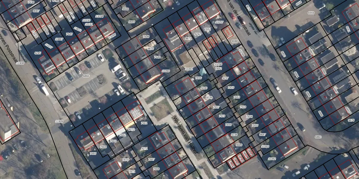 Walraven van Hallhof 16 is gelegen op kadastraal perceel SOE00G7656. Deze kadastrale aanduiding is uniek en wordt gebruikt door het Kadaster om eigendomsrechten en andere zakelijke rechten vast te leggen. Het perceel maakt onderdeel uit van de kadastrale gemeente Soest.