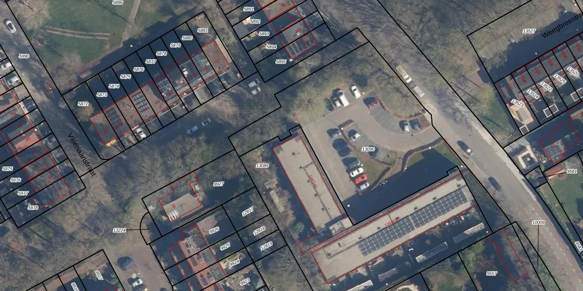 Weegbreestraat 104 is gelegen op kadastraal perceel SOE00G13089. Deze kadastrale aanduiding is uniek en wordt gebruikt door het Kadaster om eigendomsrechten en andere zakelijke rechten vast te leggen. Het perceel maakt onderdeel uit van de kadastrale gemeente Soest.