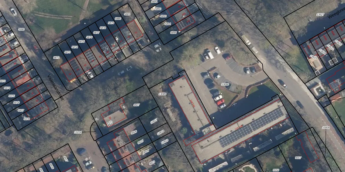 Het perceel waarop Weegbreestraat 132 staat heeft een oppervlakte van 2477 m². Dit is een zeer groot perceel. De perceeloppervlakte wordt geregistreerd door het Kadaster. Gedetailleerde informatie over de maten van dit perceel kunt u vinden in het rapport Kadastrale kaart met maatvoering van Weegbreestraat 132.