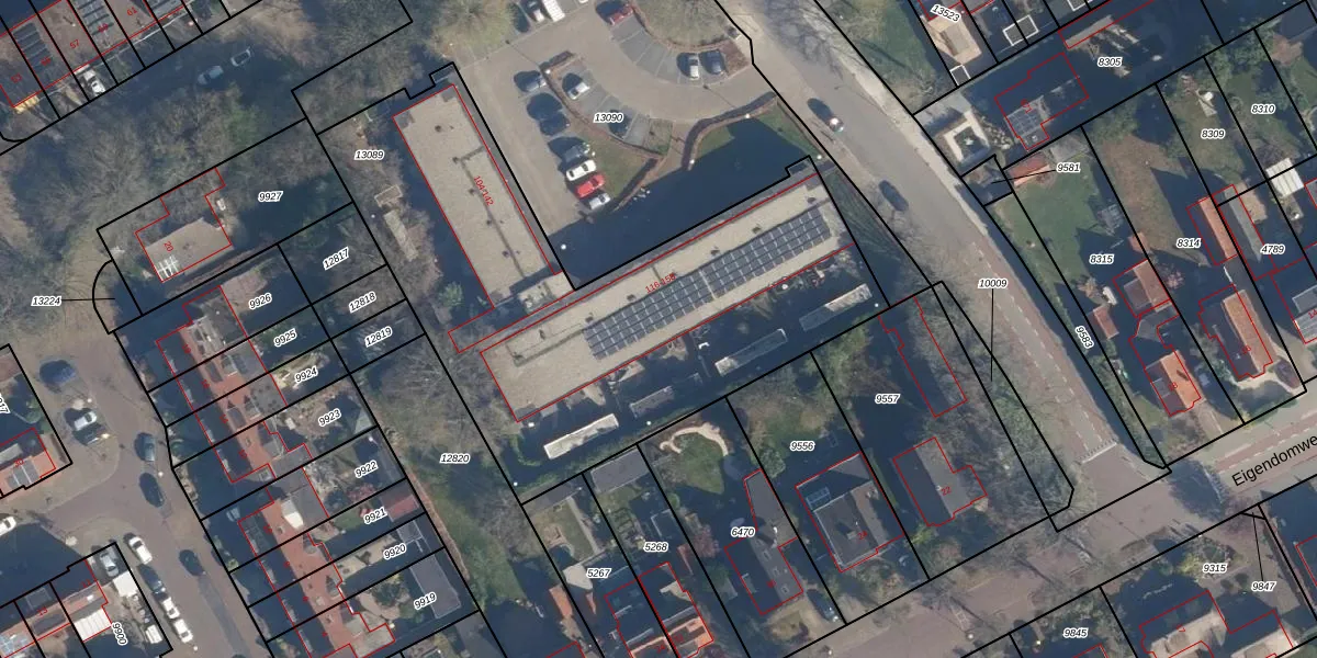 Het perceel waarop Weegbreestraat 150 staat heeft een oppervlakte van 2477 m². Dit is een zeer groot perceel. De perceeloppervlakte wordt geregistreerd door het Kadaster. Gedetailleerde informatie over de maten van dit perceel kunt u vinden in het rapport Kadastrale kaart met maatvoering van Weegbreestraat 150.
