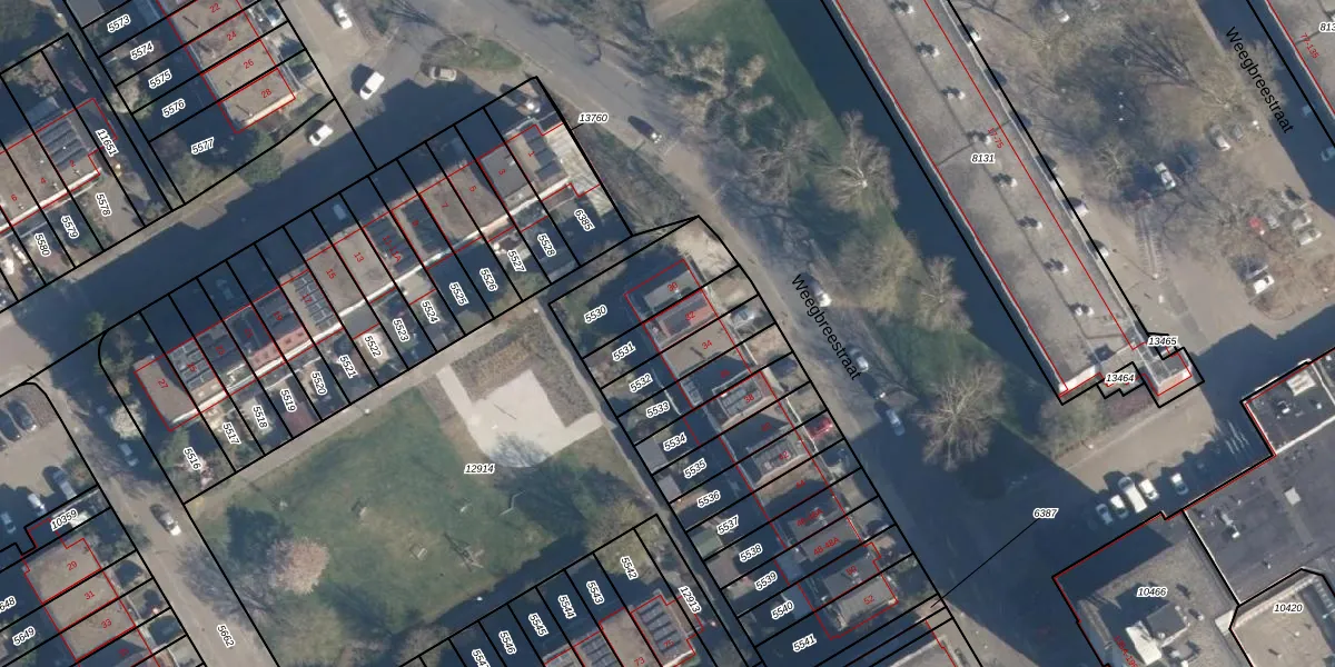 Gebruik de zoekbalk of klik op een perceel voor informatie over de adressen binnen dit perceel.
