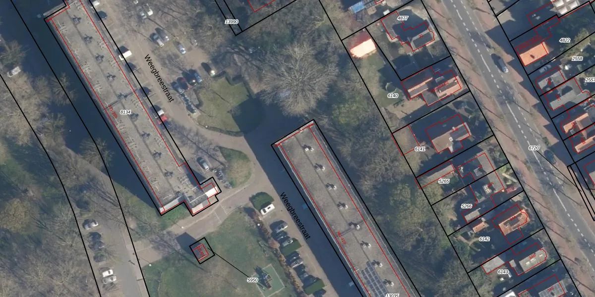 Het perceel waarop Weegbreestraat 379 staat heeft een oppervlakte van 2740 m². Dit is een zeer groot perceel. De perceeloppervlakte wordt geregistreerd door het Kadaster. Gedetailleerde informatie over de maten van dit perceel kunt u vinden in het rapport Kadastrale kaart met maatvoering van Weegbreestraat 379.