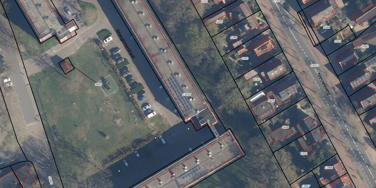 Het perceel waarop Weegbreestraat 383 staat heeft een oppervlakte van 2740 m². Dit is een zeer groot perceel. De perceeloppervlakte wordt geregistreerd door het Kadaster. Gedetailleerde informatie over de maten van dit perceel kunt u vinden in het rapport Kadastrale kaart met maatvoering van Weegbreestraat 383.