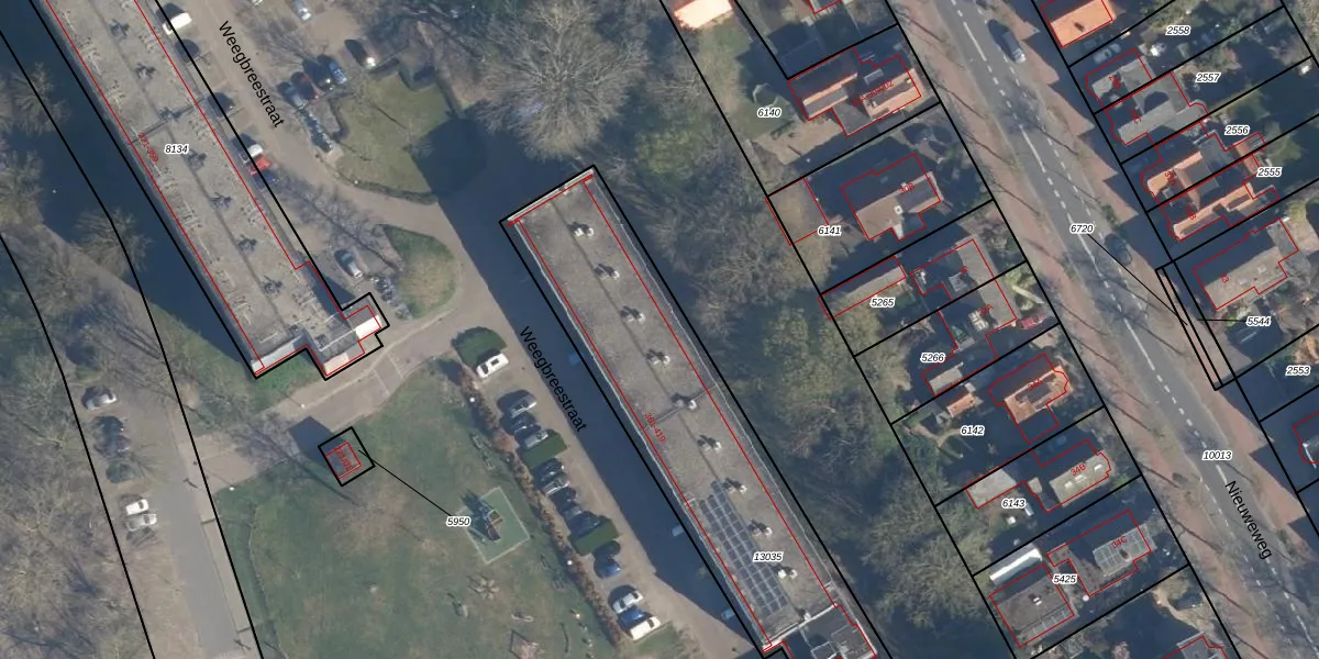 Het perceel waarop Weegbreestraat 413 staat heeft een oppervlakte van 2740 m². Dit is een zeer groot perceel. De perceeloppervlakte wordt geregistreerd door het Kadaster. Gedetailleerde informatie over de maten van dit perceel kunt u vinden in het rapport Kadastrale kaart met maatvoering van Weegbreestraat 413.