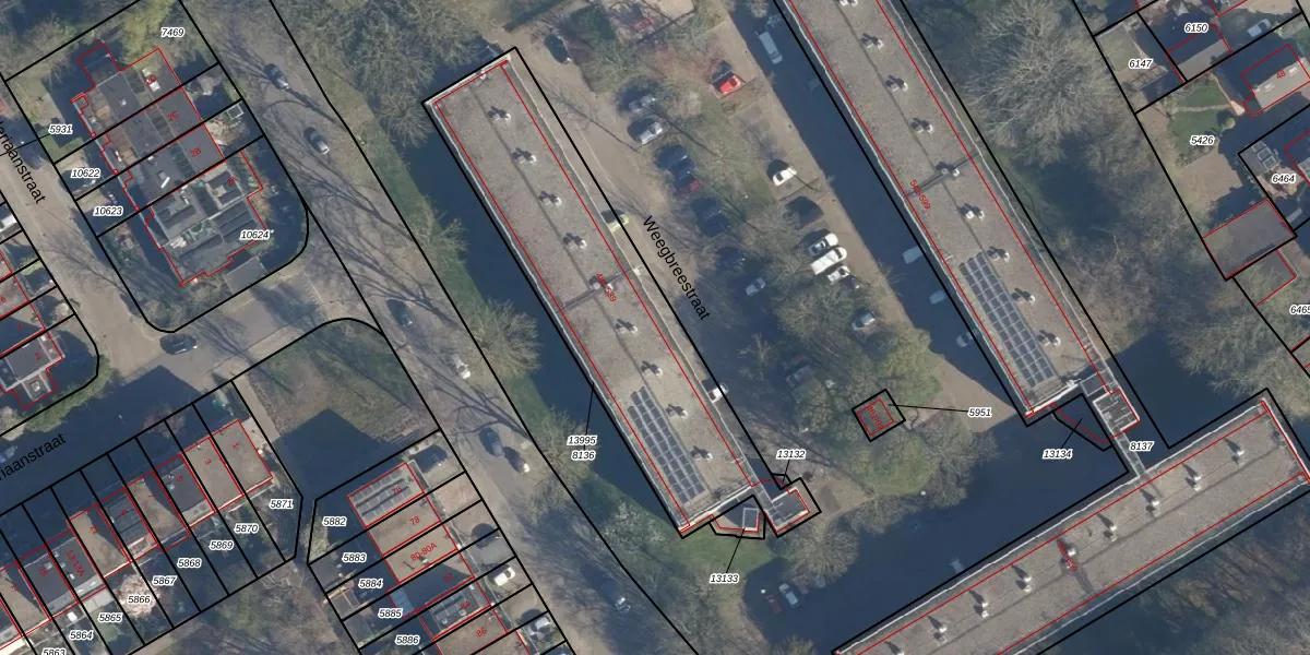 Het perceel waarop Weegbreestraat 481-443 staat heeft een oppervlakte van 1347 m². Dit is een zeer groot perceel. De perceeloppervlakte wordt geregistreerd door het Kadaster. Gedetailleerde informatie over de maten van dit perceel kunt u vinden in het rapport Kadastrale kaart met maatvoering van Weegbreestraat 481-443.