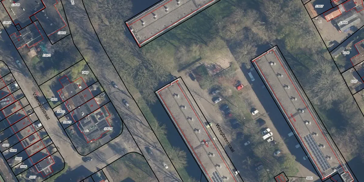 Het perceel waarop Weegbreestraat 481-454 staat heeft een oppervlakte van 1347 m². Dit is een zeer groot perceel. De perceeloppervlakte wordt geregistreerd door het Kadaster. Gedetailleerde informatie over de maten van dit perceel kunt u vinden in het rapport Kadastrale kaart met maatvoering van Weegbreestraat 481-454.