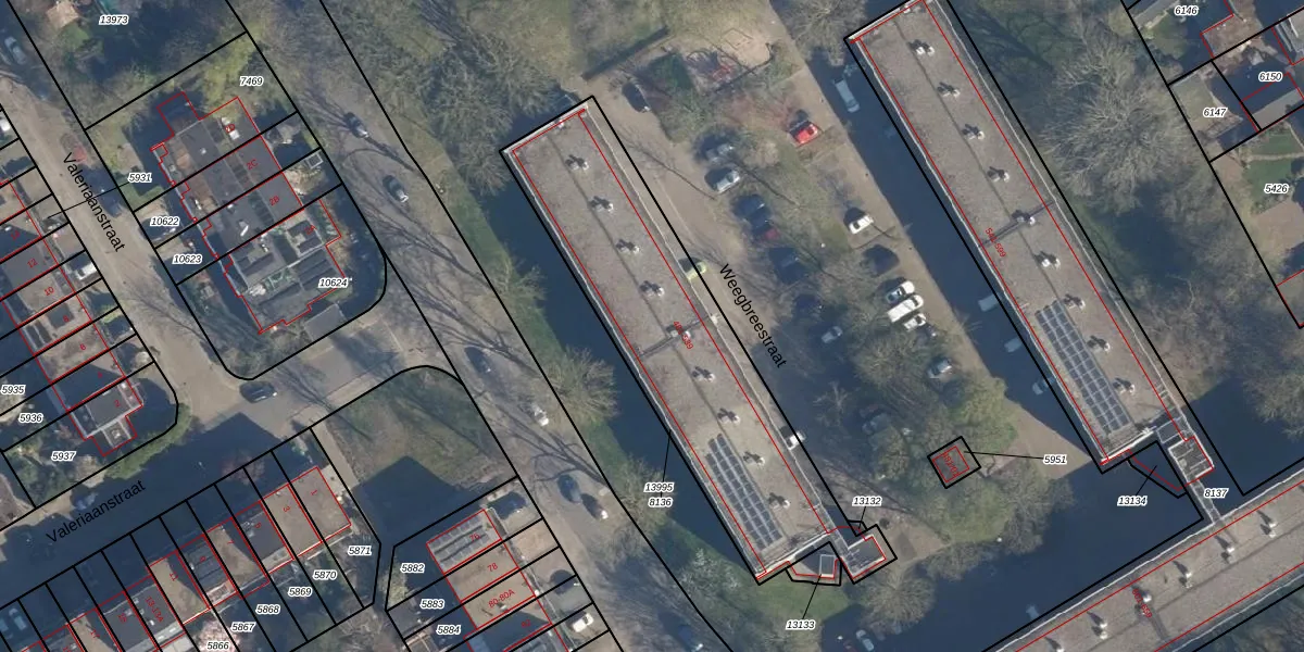 Het perceel waarop Weegbreestraat 511 staat heeft een oppervlakte van 1347 m². Dit is een zeer groot perceel. De perceeloppervlakte wordt geregistreerd door het Kadaster. Gedetailleerde informatie over de maten van dit perceel kunt u vinden in het rapport Kadastrale kaart met maatvoering van Weegbreestraat 511.