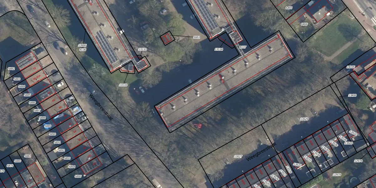 Het perceel waarop Weegbreestraat 601-410 staat heeft een oppervlakte van 2698 m². Dit is een zeer groot perceel. De perceeloppervlakte wordt geregistreerd door het Kadaster. Gedetailleerde informatie over de maten van dit perceel kunt u vinden in het rapport Kadastrale kaart met maatvoering van Weegbreestraat 601-410.