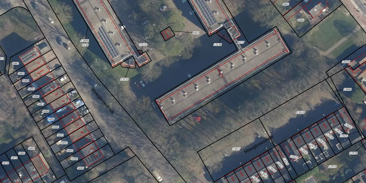 Het perceel waarop Weegbreestraat 601-411 staat heeft een oppervlakte van 2698 m². Dit is een zeer groot perceel. De perceeloppervlakte wordt geregistreerd door het Kadaster. Gedetailleerde informatie over de maten van dit perceel kunt u vinden in het rapport Kadastrale kaart met maatvoering van Weegbreestraat 601-411.