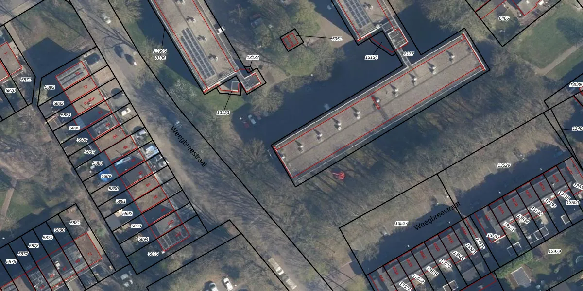 Het perceel waarop Weegbreestraat 601-414 staat heeft een oppervlakte van 2698 m². Dit is een zeer groot perceel. De perceeloppervlakte wordt geregistreerd door het Kadaster. Gedetailleerde informatie over de maten van dit perceel kunt u vinden in het rapport Kadastrale kaart met maatvoering van Weegbreestraat 601-414.