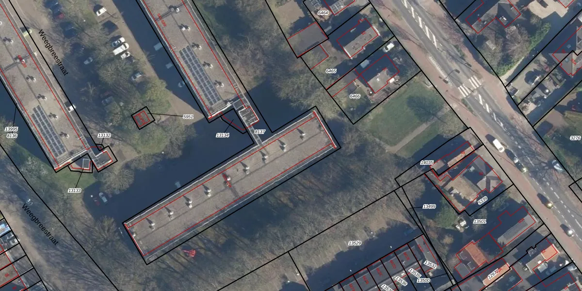 Het perceel waarop Weegbreestraat 603 staat heeft een oppervlakte van 2698 m². Dit is een zeer groot perceel. De perceeloppervlakte wordt geregistreerd door het Kadaster. Gedetailleerde informatie over de maten van dit perceel kunt u vinden in het rapport Kadastrale kaart met maatvoering van Weegbreestraat 603.