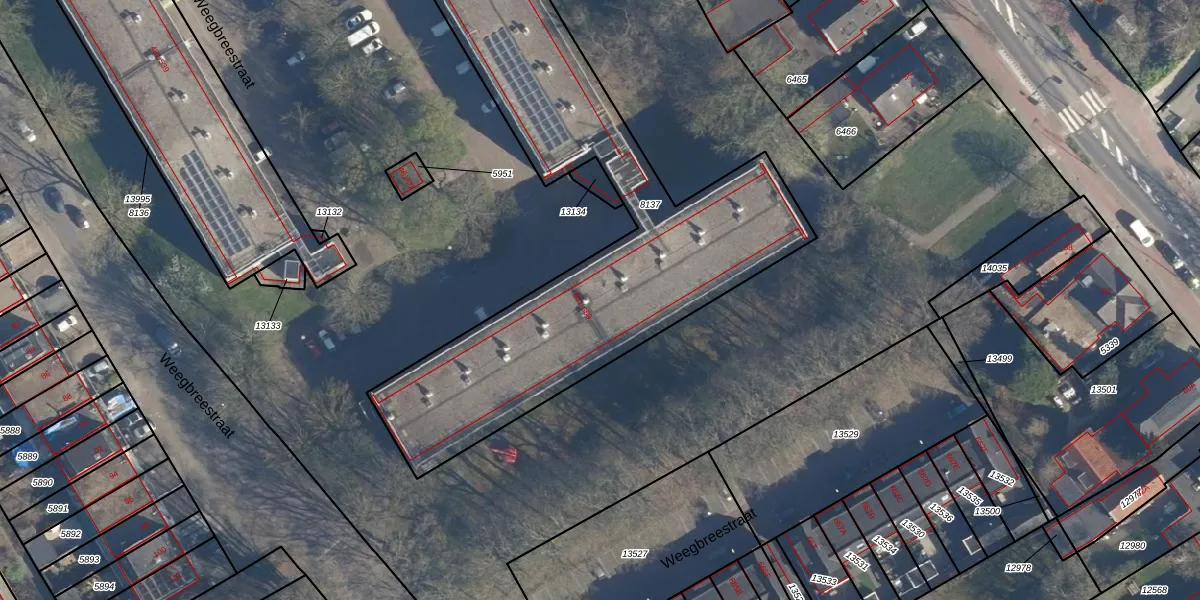 Het perceel waarop Weegbreestraat 609 staat heeft een oppervlakte van 2698 m². Dit is een zeer groot perceel. De perceeloppervlakte wordt geregistreerd door het Kadaster. Gedetailleerde informatie over de maten van dit perceel kunt u vinden in het rapport Kadastrale kaart met maatvoering van Weegbreestraat 609.
