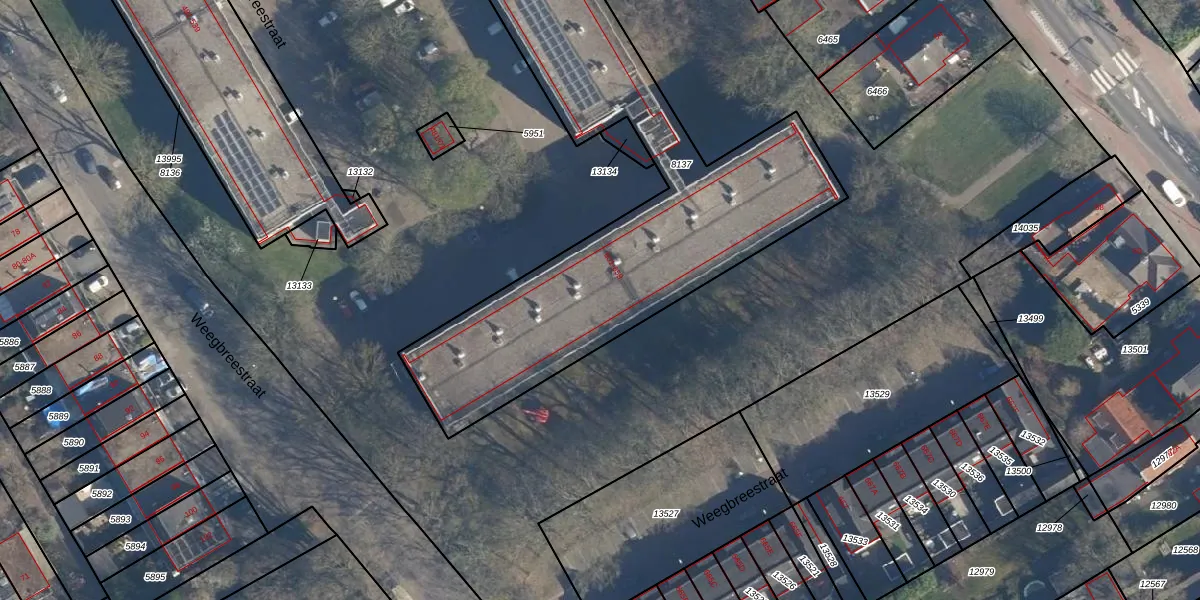 Het perceel waarop Weegbreestraat 631 staat heeft een oppervlakte van 2698 m². Dit is een zeer groot perceel. De perceeloppervlakte wordt geregistreerd door het Kadaster. Gedetailleerde informatie over de maten van dit perceel kunt u vinden in het rapport Kadastrale kaart met maatvoering van Weegbreestraat 631.