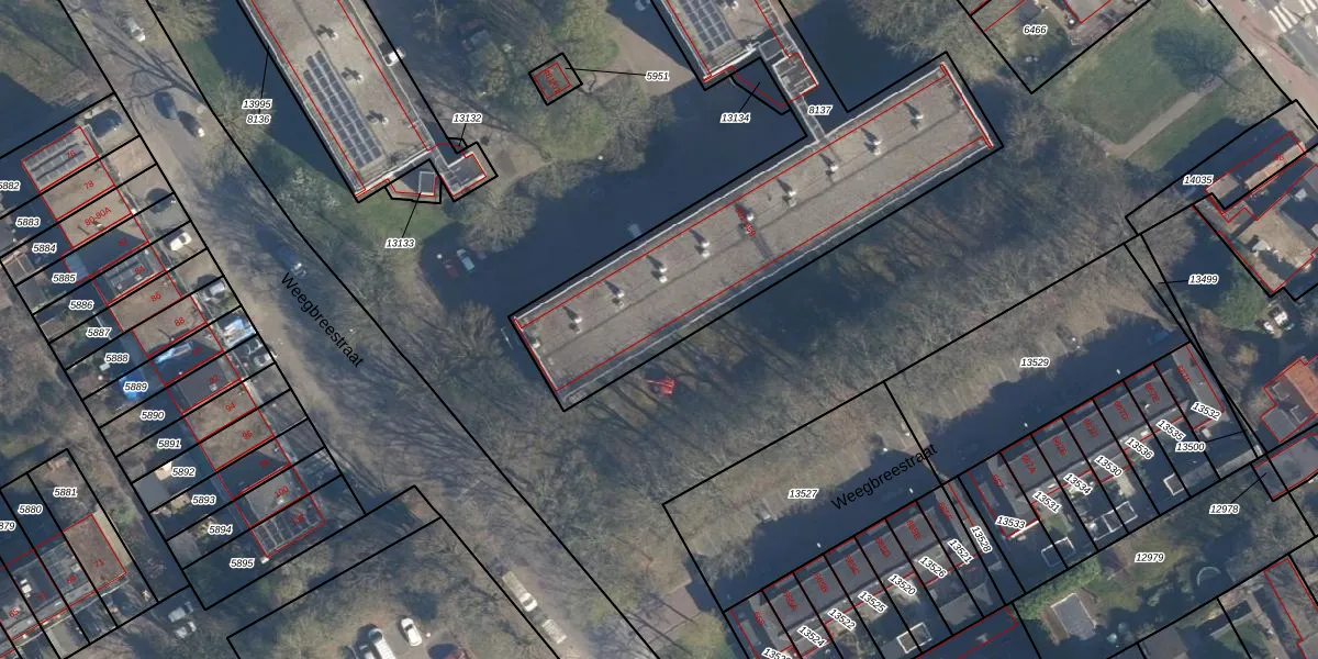 Het perceel waarop Weegbreestraat 655 staat heeft een oppervlakte van 2698 m². Dit is een zeer groot perceel. De perceeloppervlakte wordt geregistreerd door het Kadaster. Gedetailleerde informatie over de maten van dit perceel kunt u vinden in het rapport Kadastrale kaart met maatvoering van Weegbreestraat 655.