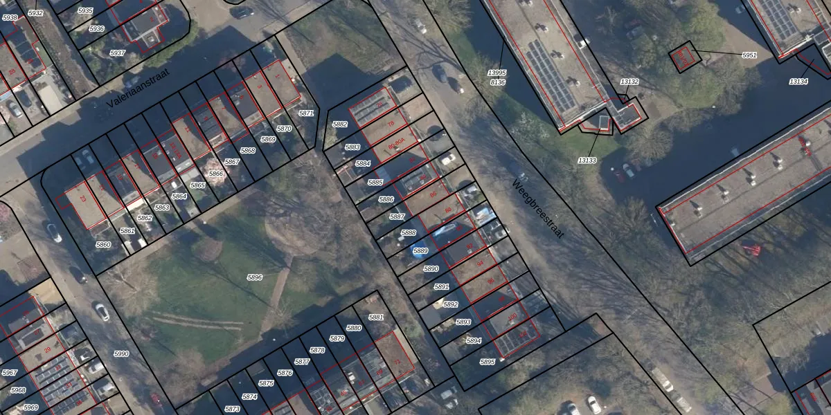 Gebruik de zoekbalk of klik op een perceel voor informatie over de adressen binnen dit perceel.