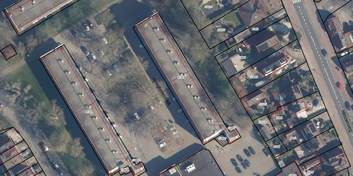 Het perceel waarop Weegbreestraat 95-334 staat heeft een oppervlakte van 1353 m². Dit is een zeer groot perceel. De perceeloppervlakte wordt geregistreerd door het Kadaster. Gedetailleerde informatie over de maten van dit perceel kunt u vinden in het rapport Kadastrale kaart met maatvoering van Weegbreestraat 95-334.
