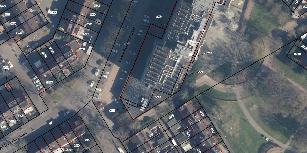Wiardi Beckmanstraat 165 is gelegen op kadastraal perceel SOE00G6511. Deze kadastrale aanduiding is uniek en wordt gebruikt door het Kadaster om eigendomsrechten en andere zakelijke rechten vast te leggen. Het perceel maakt onderdeel uit van de kadastrale gemeente Soest.