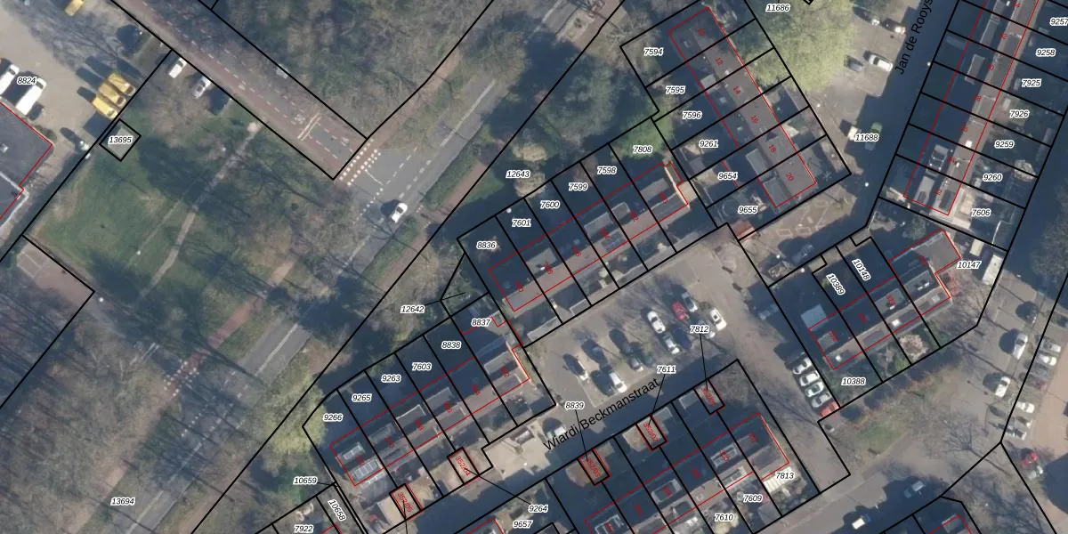 Gebruik de zoekbalk of klik op een perceel voor informatie over de adressen binnen dit perceel.