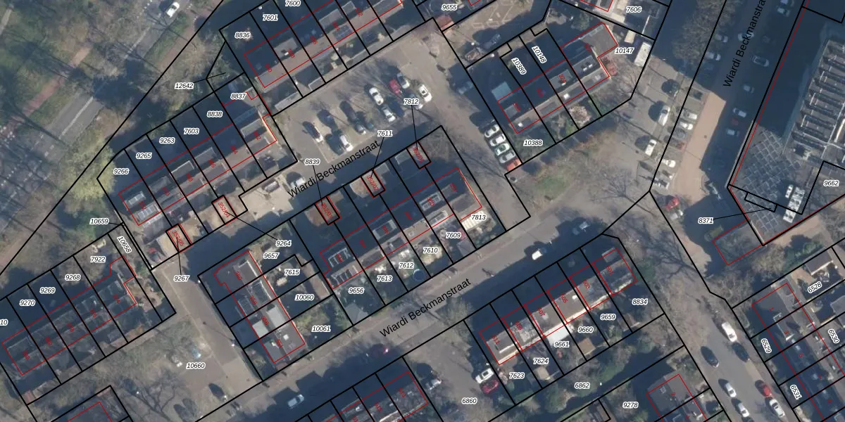 Gebruik de zoekbalk of klik op een perceel voor informatie over de adressen binnen dit perceel.