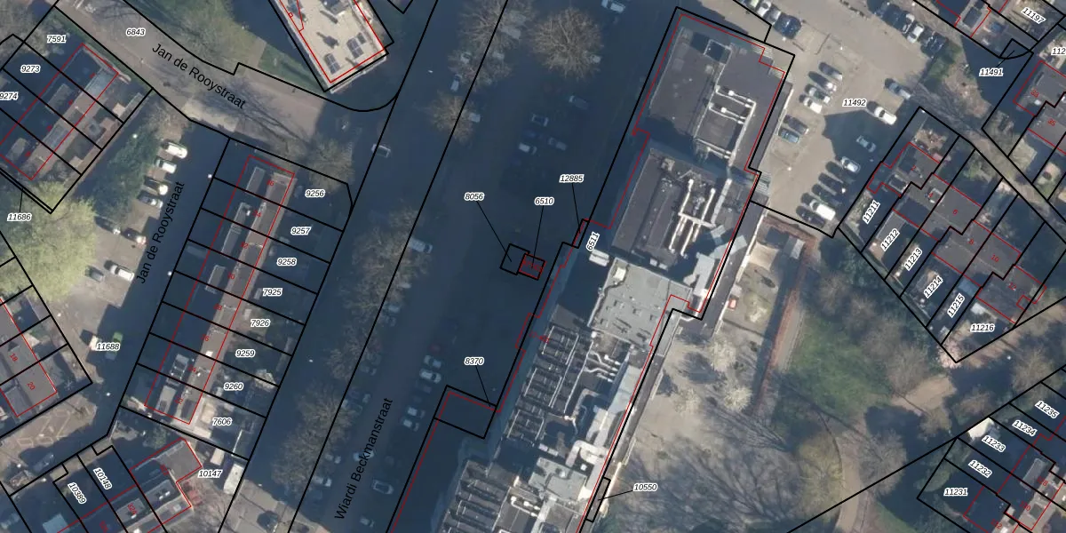 Wiardi Beckmanstraat 477-01 is gelegen op kadastraal perceel SOE00G6510. Deze kadastrale aanduiding is uniek en wordt gebruikt door het Kadaster om eigendomsrechten en andere zakelijke rechten vast te leggen. Het perceel maakt onderdeel uit van de kadastrale gemeente Soest.