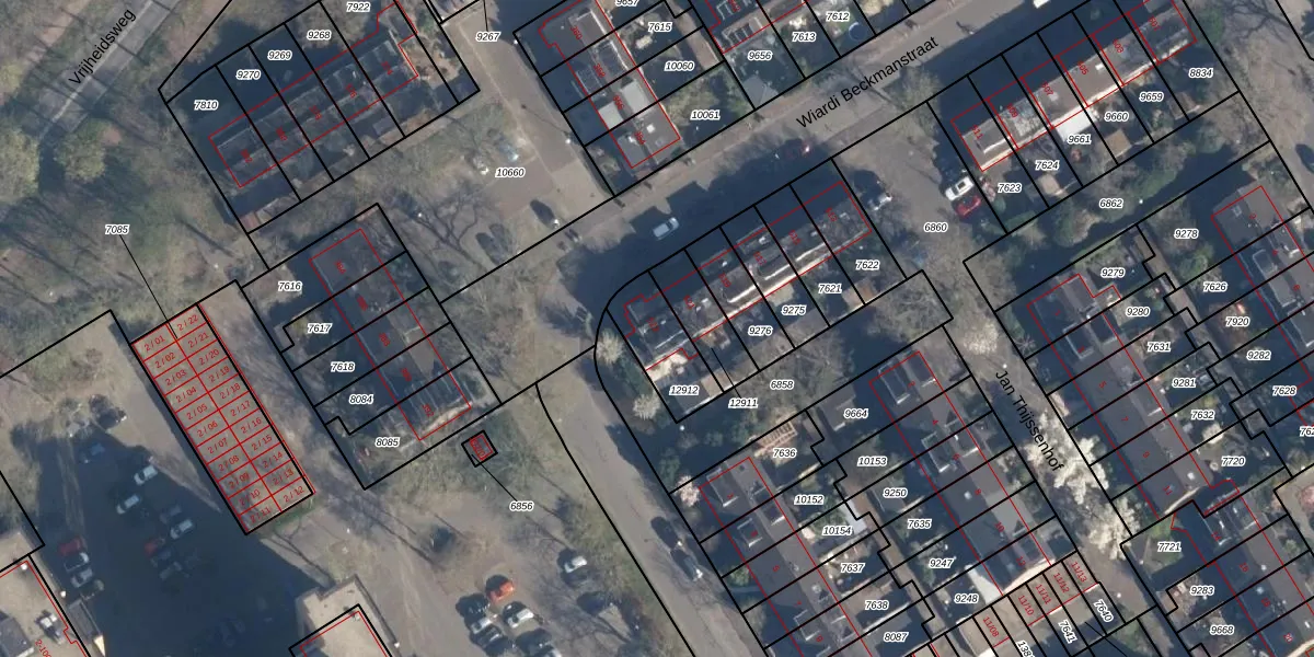 Gebruik de zoekbalk of klik op een perceel voor informatie over de adressen binnen dit perceel.