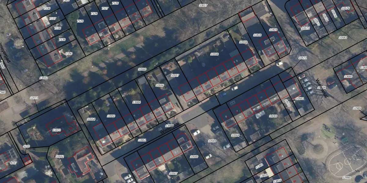 Wielewaal 45 is gelegen op kadastraal perceel SOE00G10557. Deze kadastrale aanduiding is uniek en wordt gebruikt door het Kadaster om eigendomsrechten en andere zakelijke rechten vast te leggen. Het perceel maakt onderdeel uit van de kadastrale gemeente Soest.