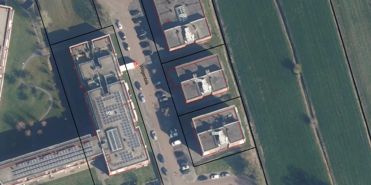 Het perceel waarop Wilgenblik 38 staat heeft een oppervlakte van 1072 m². Dit is een zeer groot perceel. De perceeloppervlakte wordt geregistreerd door het Kadaster. Gedetailleerde informatie over de maten van dit perceel kunt u vinden in het rapport Kadastrale kaart met maatvoering van Wilgenblik 38.