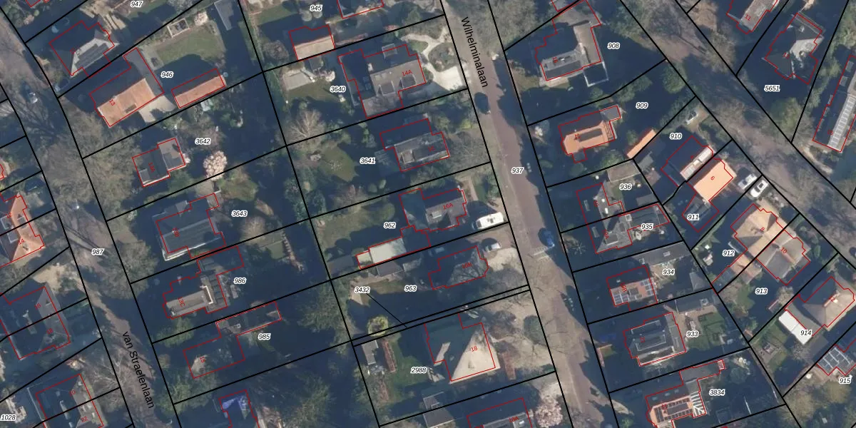 Gebruik de zoekbalk of klik op een perceel voor informatie over de adressen binnen dit perceel.