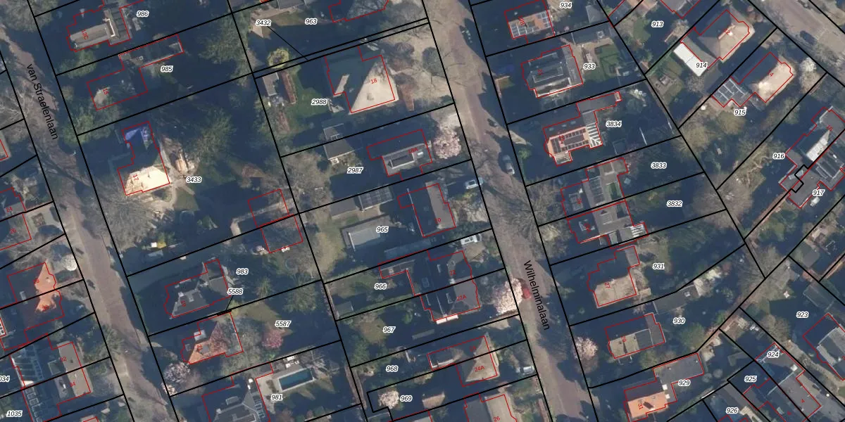 Het perceel waarop Wilhelminalaan 20 staat heeft een oppervlakte van 737 m². Dit is een groot perceel. De perceeloppervlakte wordt geregistreerd door het Kadaster. Gedetailleerde informatie over de maten van dit perceel kunt u vinden in het rapport Kadastrale kaart met maatvoering van Wilhelminalaan 20.