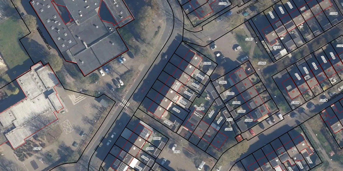 Het perceel waarop Willaertstraat 18 staat heeft een oppervlakte van 153 m². Dit is een middelgroot perceel. De perceeloppervlakte wordt geregistreerd door het Kadaster. Gedetailleerde informatie over de maten van dit perceel kunt u vinden in het rapport Kadastrale kaart met maatvoering van Willaertstraat 18.