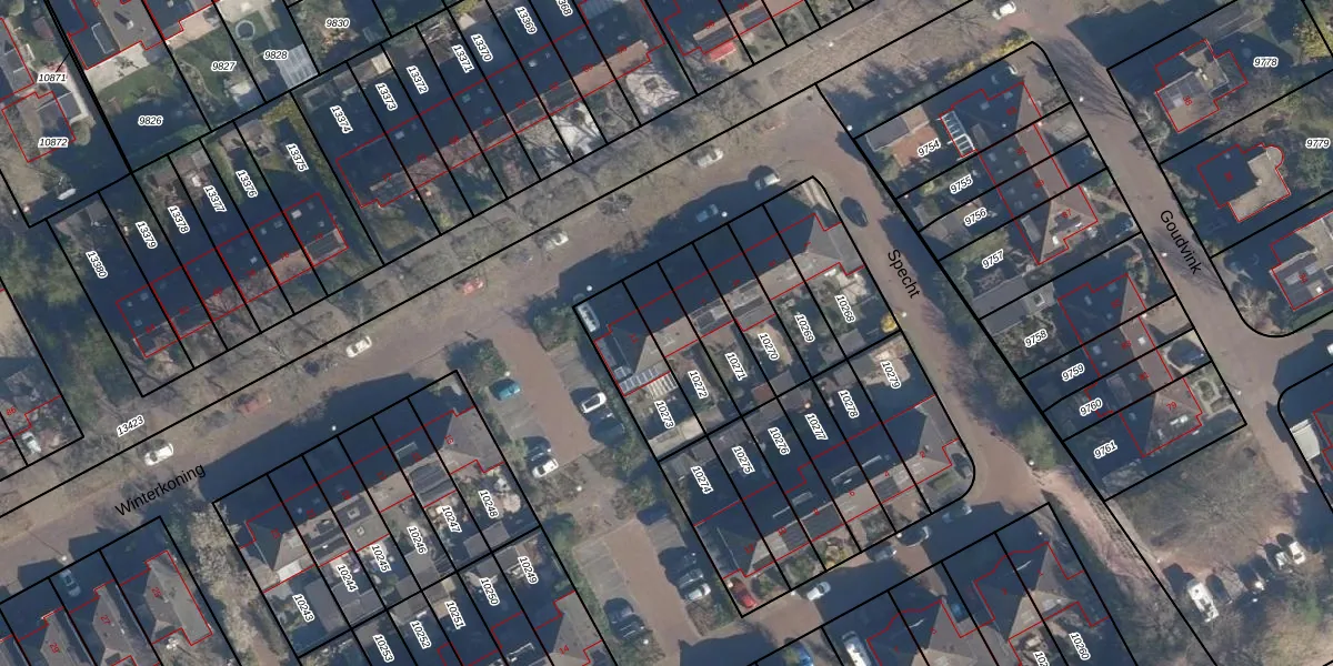Gebruik de zoekbalk of klik op een perceel voor informatie over de adressen binnen dit perceel.