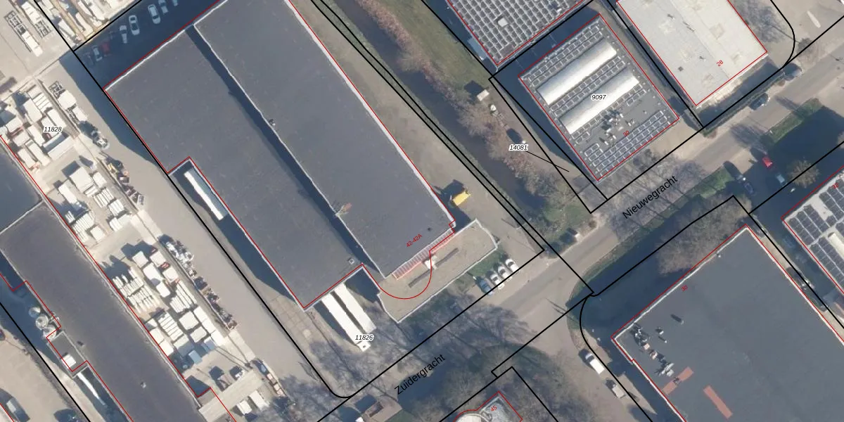 Het perceel waarop Zuidergracht 42-A staat heeft een oppervlakte van 5870 m². Dit is een zeer groot perceel. De perceeloppervlakte wordt geregistreerd door het Kadaster. Gedetailleerde informatie over de maten van dit perceel kunt u vinden in het rapport Kadastrale kaart met maatvoering van Zuidergracht 42-A.