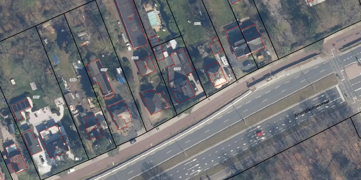Amersfoortsestraat 29 is gelegen op kadastraal perceel SOE00E3165. Deze kadastrale aanduiding is uniek en wordt gebruikt door het Kadaster om eigendomsrechten en andere zakelijke rechten vast te leggen. Het perceel maakt onderdeel uit van de kadastrale gemeente Soest.