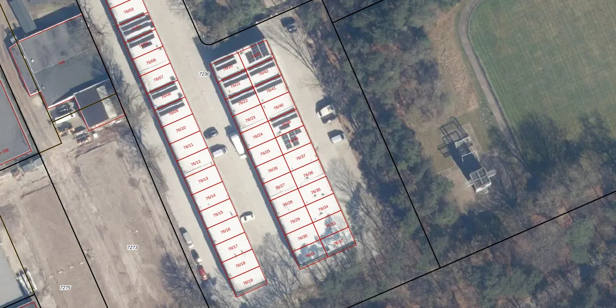 Het adres is gelegen op perceel 7230 in de sectie E en de kadastrale gemeente Soest. De kadastrale aanduiding is aldus SOE00-E-7230. De oppervlakte van het perceel is 1,1 ha. Dat is groter dan gemiddeld in Soest, waar de gemiddelde perceeloppervlakte op 2255,51 m² ligt. De grootste perceeloppervlakte in de kadastrale gemeente is 1,42 km². De kleinste oppervlakte bedraagt 0 m². Op het perceel liggen in totaal 43 adressen. In de Basisregistratie Kadaster (BRK) werden de grenzen van het perceel geregistreerd op 02-09-2024.