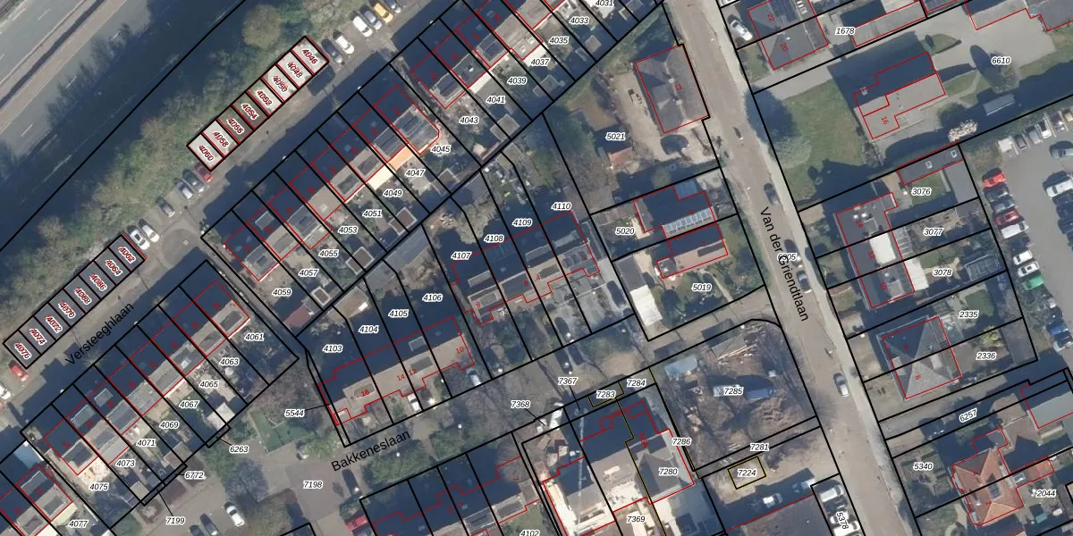 Bakkeneslaan 4 is gelegen op kadastraal perceel SOE00E4109. Deze kadastrale aanduiding is uniek en wordt gebruikt door het Kadaster om eigendomsrechten en andere zakelijke rechten vast te leggen. Het perceel maakt onderdeel uit van de kadastrale gemeente Soest.