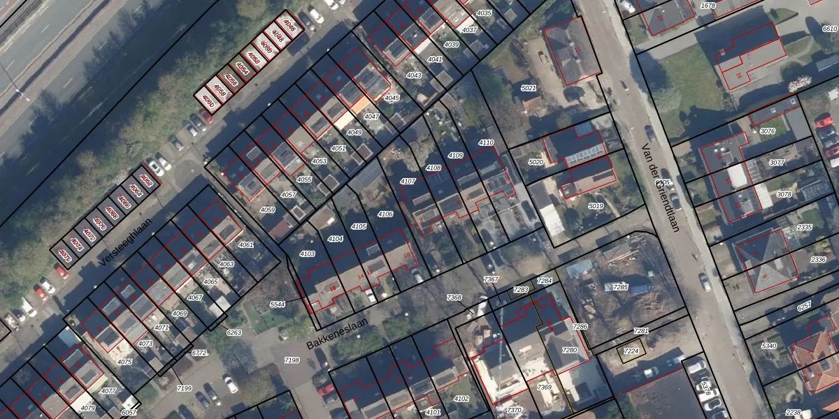 Bakkeneslaan 8 is gelegen op kadastraal perceel SOE00E4107. Deze kadastrale aanduiding is uniek en wordt gebruikt door het Kadaster om eigendomsrechten en andere zakelijke rechten vast te leggen. Het perceel maakt onderdeel uit van de kadastrale gemeente Soest.