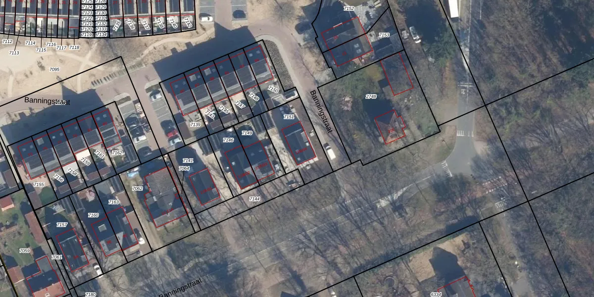Gebruik de zoekbalk of klik op een perceel voor informatie over de adressen binnen dit perceel.