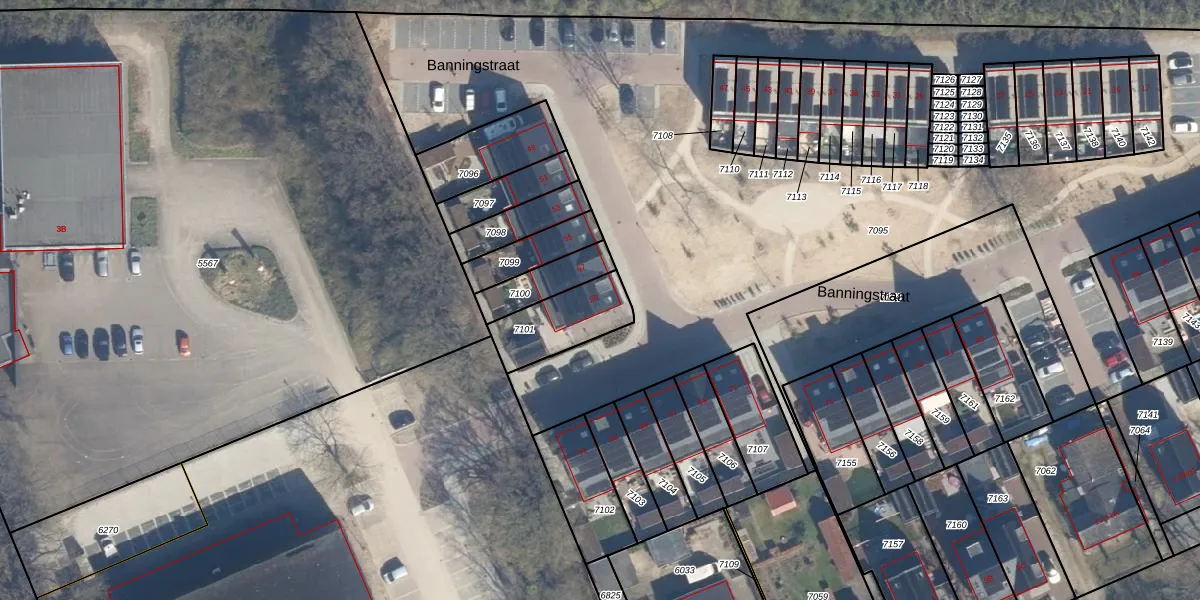 Banningstraat 59 is gelegen op kadastraal perceel SOE00E7101. Deze kadastrale aanduiding is uniek en wordt gebruikt door het Kadaster om eigendomsrechten en andere zakelijke rechten vast te leggen. Het perceel maakt onderdeel uit van de kadastrale gemeente Soest.