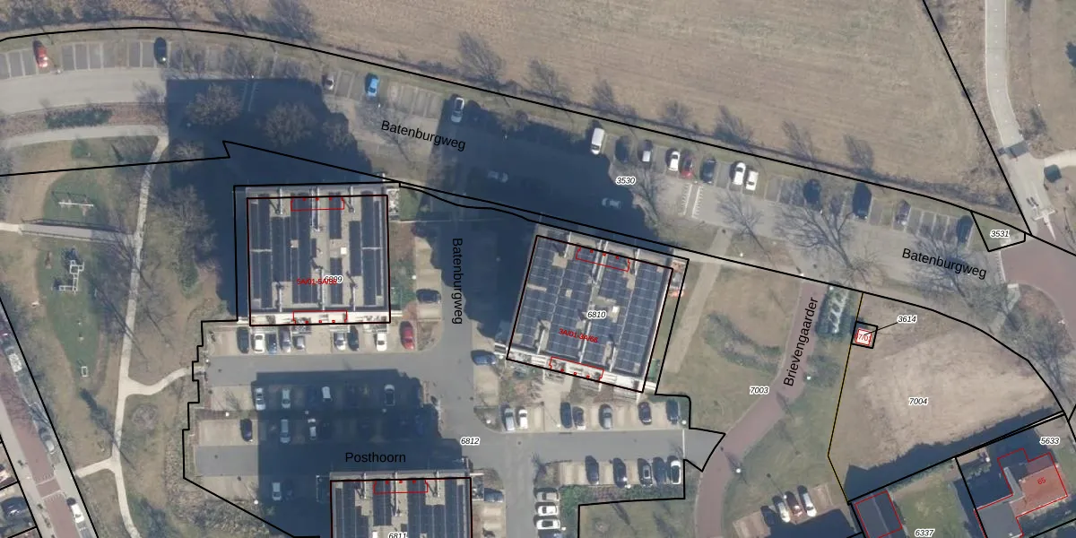 Batenburgweg 3-A-05 is gelegen op kadastraal perceel SOE00E6810. Deze kadastrale aanduiding is uniek en wordt gebruikt door het Kadaster om eigendomsrechten en andere zakelijke rechten vast te leggen. Het perceel maakt onderdeel uit van de kadastrale gemeente Soest.